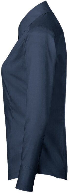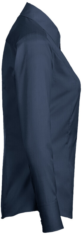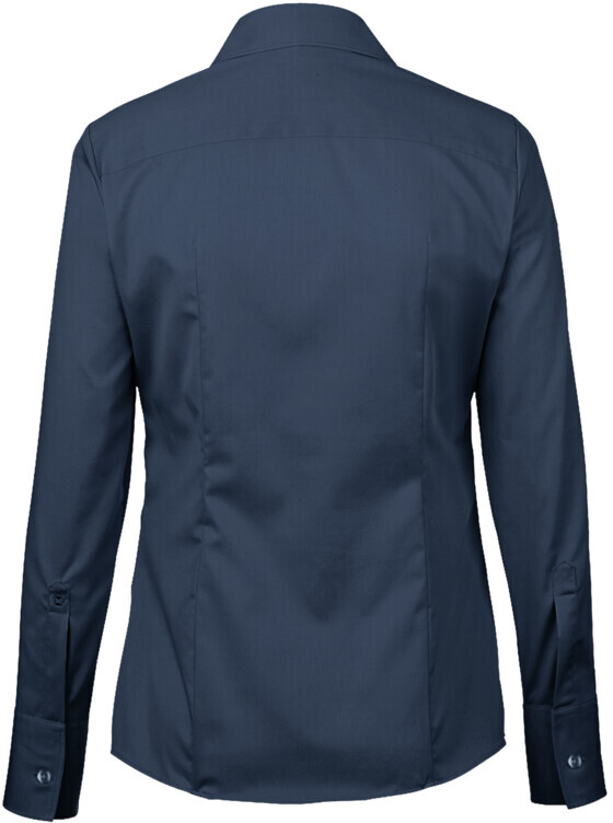 Klassische, langärmelige Bluse mit Kent-Kragen, leichter Taillierung durch Wiener Naht im Vorderteil und Abnäher im Rückenteil, leicht gerundetem Saum, modischer Paspel aus dunkelblauem Satin an der inneren Kragennaht, hochwertig und schmal verarbeiteter Knopfleiste, doppelter Schulterpasse, 4-Loch-Knöpfen - über Kreuz vernäht und doppelt verknotet für extra festen Halt -, Ersatzknöpfen und Seitenschlitzen. Hergestellt aus formstabilem, strapazierfähigem und bügelfreiem Baumwoll-Popeline. Gewebtes HAKRO Necklabel aus hochwertigem Kettsatin mit weichen, ultraschallgeschnittenen Bandkanten für höchsten Tragekomfort.