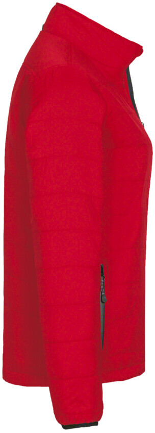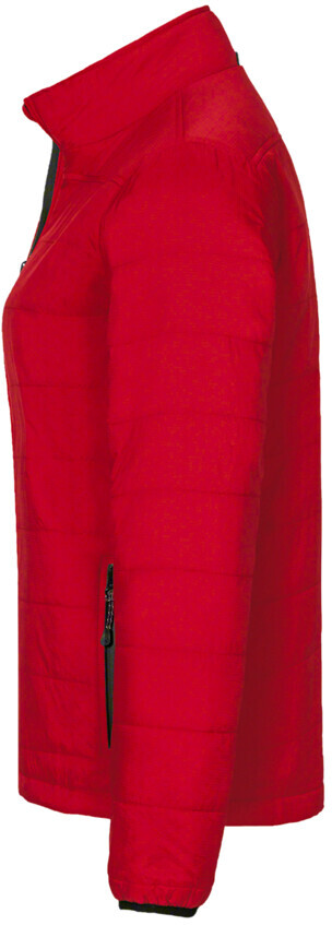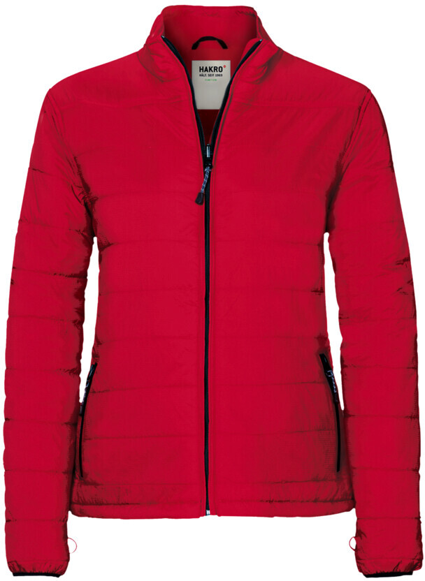 Wärmende Isolationsjacke für Damen mit elastischen Ärmelabschlüssen, hochwertigem Zwei-Wege-Frontreißverschluss mit Reißverschlussanhänger, funktioneller Innentasche und seitlichen Einschubtaschen mit Reißverschluss. Alle Reißverschlüsse von YKK®. Hergestellt aus atmungsaktivem Micro-Ripstop-Außenmaterial mit Wattierung aus wärmender und pflegeleichter Kunstfaser. Gewebtes HAKRO Necklabel aus hochwertigem Kettsatin mit weichen, ultraschallgeschnittenen Bandkanten für höchsten Tragekomfort und gewebtes HAKRO Flaglabel an der linken Seitennaht.