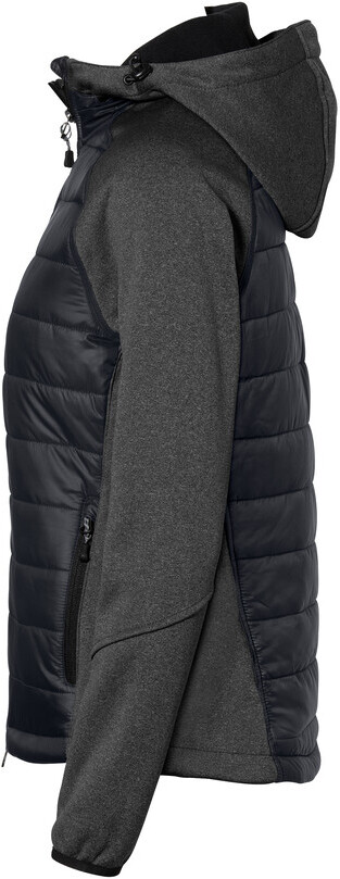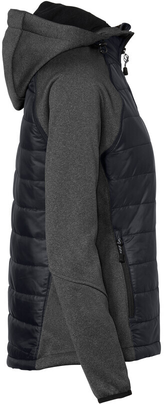 Leichte, wasserabweisende und atmungsaktive Hybridjacke für Damen, mit kontrastfarbigen Raglanärmeln, Einsätzen an den Seiten, Kragen und Schultern, hochwertigem Zwei-Wege-Frontreißverschluss mit innenliegender Windstoppatte, Reißverschlussgarage und Einschubtaschen mit Reißverschluss. Alle Reißverschlüsse von YKK®. Saumabschluss mit verlängertem, abgerundetem Rückenteil und Reflexapplikation für bessere Sichtbarkeit. Weitenverstellbarem Saumabschluss mit Tunnelkordelzug und Stoppern. Hergestellt aus einem Materialmix aus atmungsaktivem Micro-Ripstop mit Wattierung aus pflegeleichten Kunstfasern und Einsätzen aus dehnfähigem Softshellmaterial. Gewebtes HAKRO Necklabel aus hochwertigem Kettsatin mit weichen, ultraschallgeschnittenen Bandkanten für höchsten Tragekomfort und gewebtes HAKRO Looplabel am linken Saum. Ihr besonderer Vorteil: Ein verdeckter Reißverschluss im inneren Rückenteil (Revisionsöffnung) ermöglicht das einfache und individuelle Veredeln der Jacke.