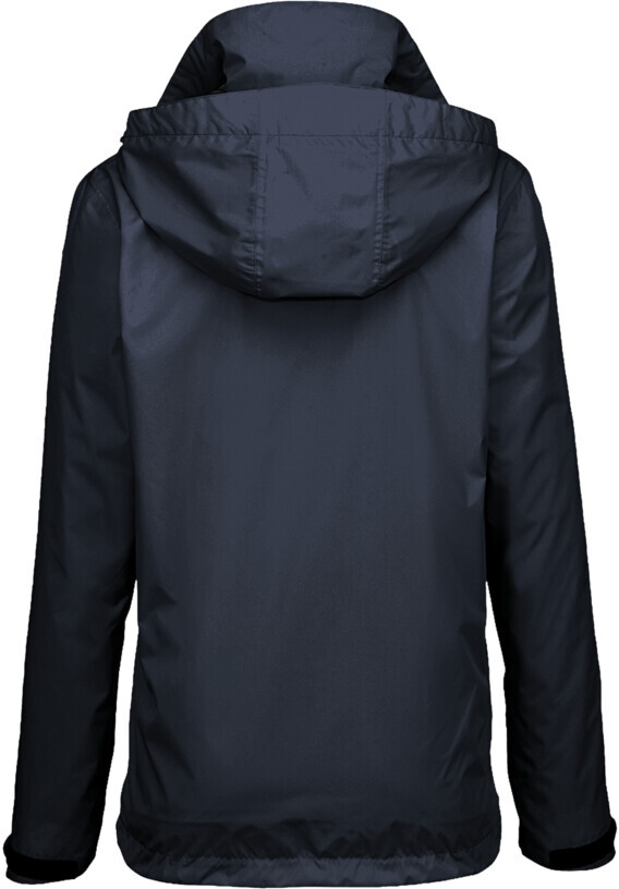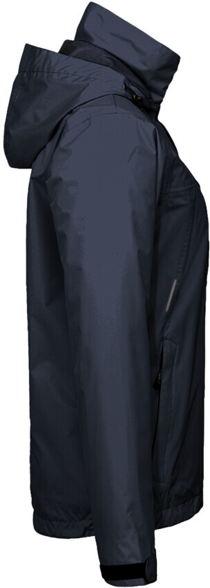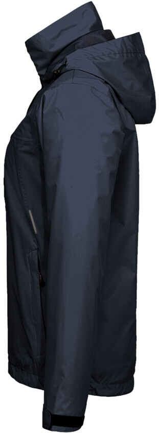 Leichte, funktionelle Regenjacke für Damen, mit wasser- und winddichtem Obermaterial sowie getapten Nähten, klimaregulierendem Netz-Innenfutter, angenehm weichem Fleece an der Krageninnenseite, einer im Kragen integrierbaren und weitenverstellbaren Kapuze, verschließbarer Brustinnentasche, hochwertigem Frontreißverschluss mit doppelter Windstoppatte und Seitentaschen mit Reißverschluss. Alle Reißverschlüsse von YKK®. Der Saumabschluss mit verlängertem, abgerundetem Rückenteil ist mit einem Tunnelkordelzug mit Stoppern in der Weite verstellbar, weitenverstellbare Ärmelbündchen mit Klettband zum stufenlosen Regulieren und Reflexapplikationen für verbesserte Sichtbarkeit. Hergestellt aus strapazierfähigem, wasser- und winddichtem, atmungsaktivem Obermaterial aus 2-Lagen-Laminat mit TRIACTIVE PRO-Technologie für maximale und zuverlässige Wasserdichte. Gewebtes HAKRO Necklabel aus hochwertigem Kettsatin mit weichen, ultraschallgeschnittenen Bandkanten für höchsten Tragekomfort und gewebtes HAKRO Flaglabel an der linken Seitennaht.