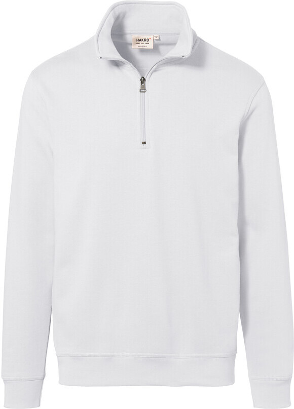 Klassischer Troyer mit hochwertigem Reißverschluss von YKK®, formstabilen Bündchen mit LYCRA®-Anteil, nicht angerauter Innenseite (French-Terry) und Nackenband. Hergestellt aus pflegeleichter Baumwoll-Polyester-Mischung für höchste Ansprüche. Gewebtes HAKRO Necklabel aus hochwertigem Kettsatin mit weichen, ultraschallgeschnittenen Bandkanten für höchsten Tragekomfort und gewebtes HAKRO Flaglabel an der linken Seitennaht.